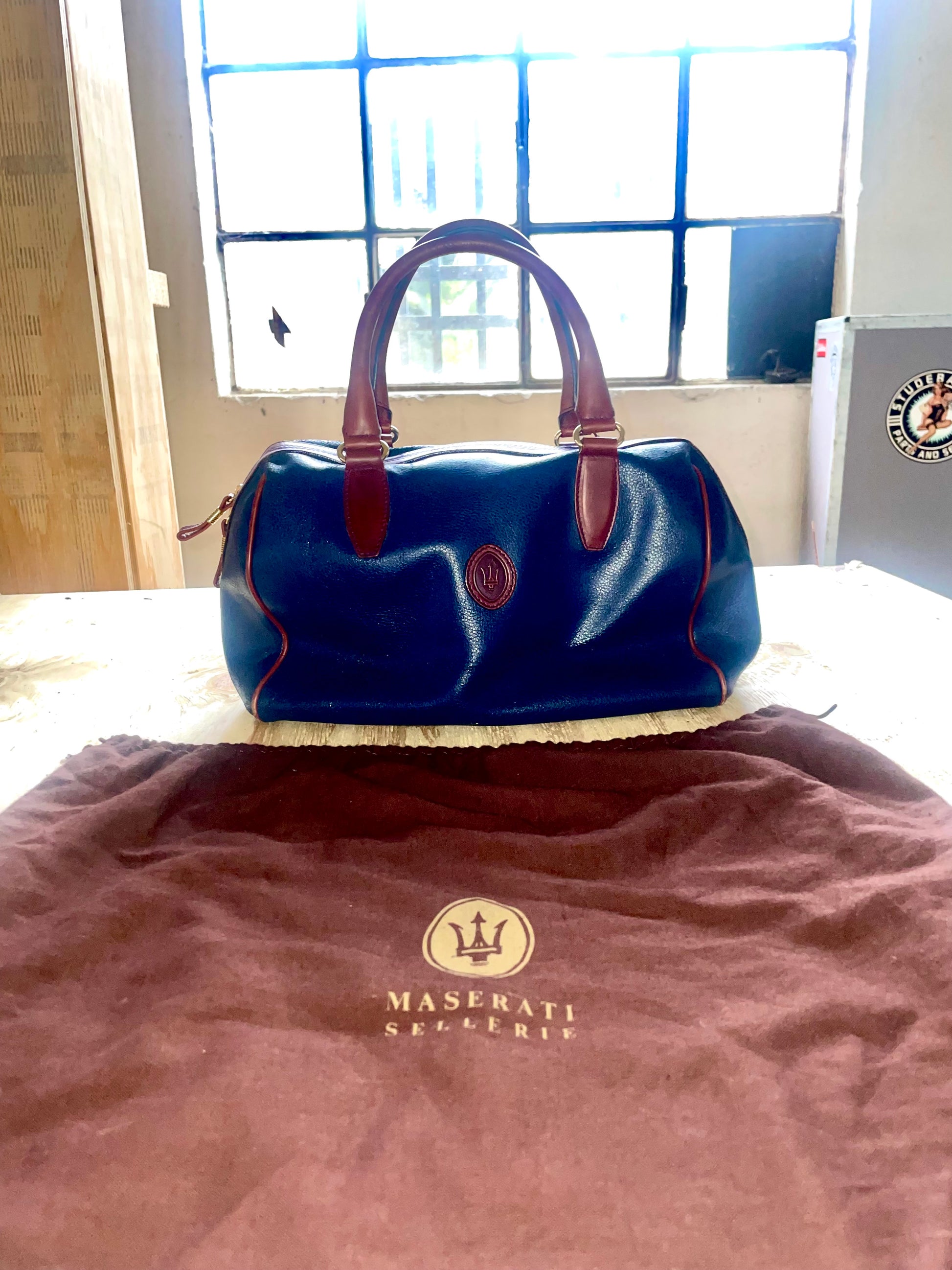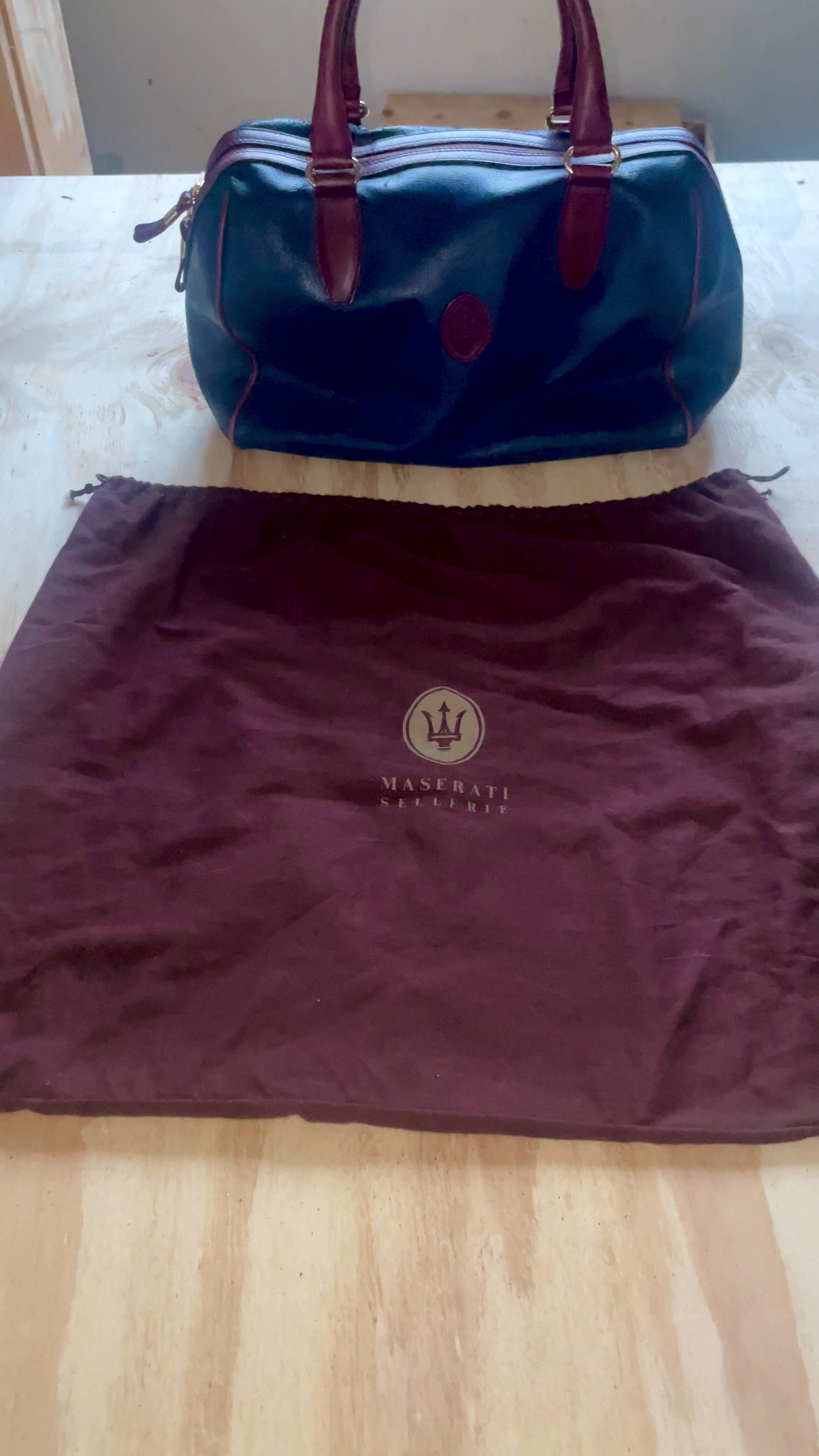 Rarissima borsa/bagaglio Maserati con annessa copertura abbinata originale per contenerla. Perfetta per qualsiasi occasione ed un ottimo regalo. Parte sottostante con una leggera macchina per il resto in splendide condizioni.