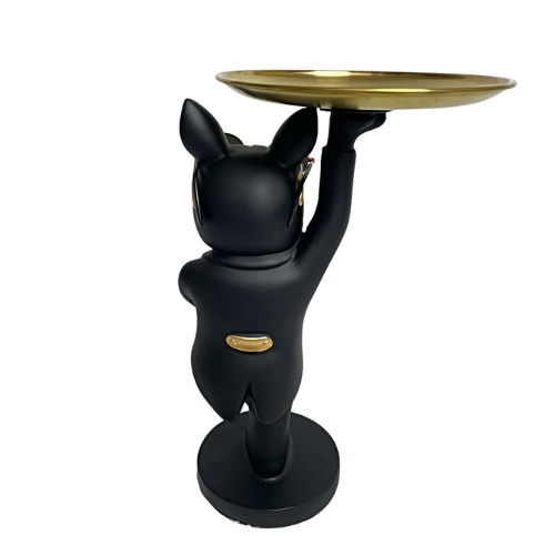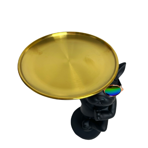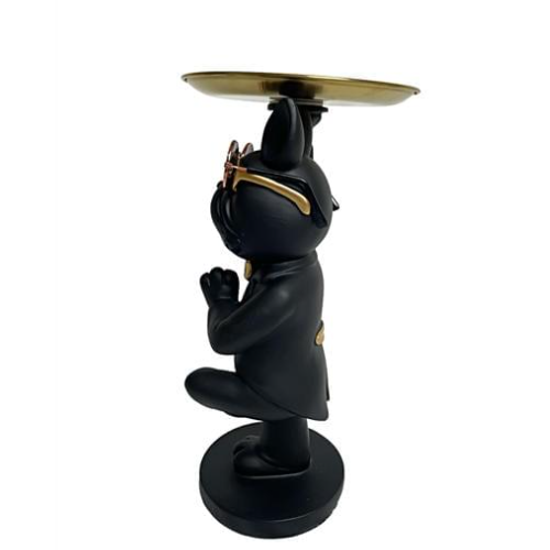 Sculture Bulldog Francese in Vetroresina con occhiali e piatto per appoggiare qualsiasi oggetto di ridotte dimensioni